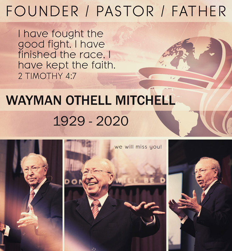 Our Pastor, Wayman O. Mitchell, became a born-again Christian in 1953, and in 1954 he was baptized in the Holy Spirit and became a pastor in 1960.
